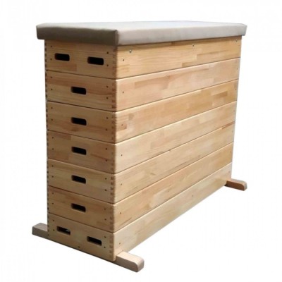 PLINTO SENIOR RECTO 7 SEGMENTOS. Fabricado en madera de pino de 1ª calidad. Union de las esquinas por lazos de cola de milano y refuerzos de haya fijados con tornillos. Tapizado en cuero sintetico higroscopico. Altura 110cm y largo 145cm.