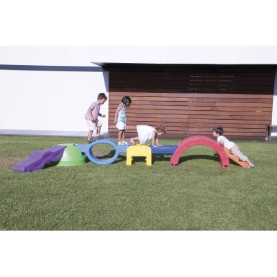 Recorrido Motriz.Compuesto por 7 piezas de plastico de gran tamaño,cada una con una superficie diferente, lineas,puntos,circulos,etc. Soportan mas de 300kg. Facil limpieza y almacenamiento.Las piezas tambien se venden por separado.CONSULTAR.