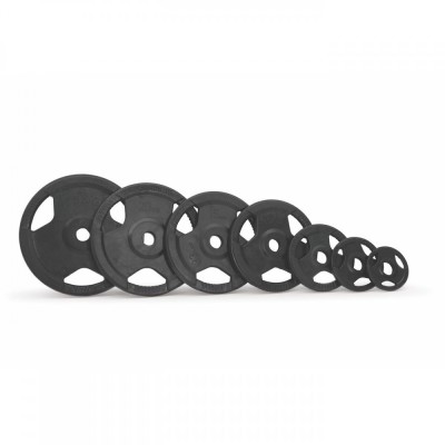 PLATO OLÍMPICO GOMA negra con agarres. Diámetro orificio 50 mm. Peso 25 Kg